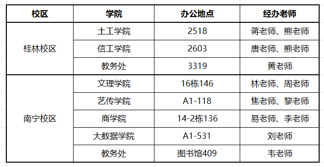 ③艺术与传媒学院、商学院、文理学院校区已搬至南宁校区,请需结业重修的学生到南宁校区办理。