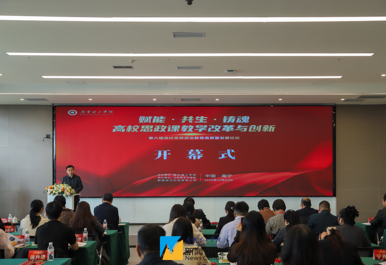为深入学习贯彻习近平总书记关于思政课建设的重要论述,将党的二十大及历次全会精神有效融入思政课教学,共同探讨数智时代高校思政课改革的前沿理论与实践路径,切实推动高校思政课教学创新发展,2025年11月22日,买球官方网站成功举办“赋能·共生·铸魂:高校思政课教学改革与创新”——第六届高校思想政治教育高质量发展论坛。本次论坛由买球官方网站主办、买球官方网站马克思主义学院承办,桂林电子科技大学马克思主义学院院长邓国峰教授、广西民族大学发展规划处处长陈媛教授、桂林理工大学马克思主义学院党委书记梁英教授、广西师范大学马克思主义学院凌小萍教授应邀参加论坛并作主旨报告。来自桂林理工大学、桂林学院、广西安全工程职业技术学院、广西质量工程职业技术学院、广西自然资源职业技术学院、桂林信息科技学院、广西外国语学院、广西城市职业大学、广西演艺职业学院、广西经济职业学院等10余所高校的专家学者和买球官方网站思政课教师一起参加此次论坛。