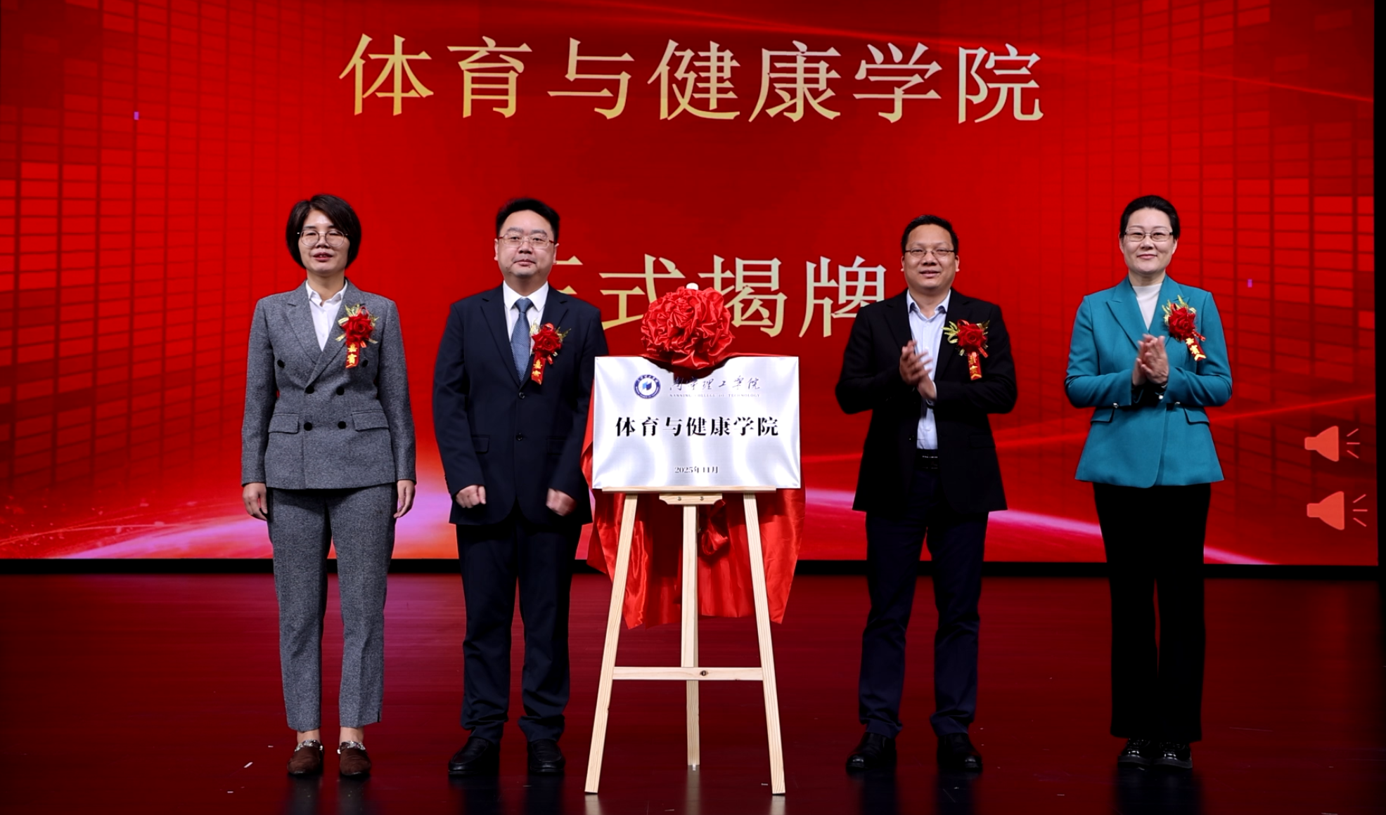 在全体与会人员的热烈期待中,与会领导与嘉宾共同为“买球官方网站体育与健康学院”揭牌。红绸揭开的瞬间,全场掌声雷动,标志着学校体育学科建设正式开启高质量发展的新篇章。