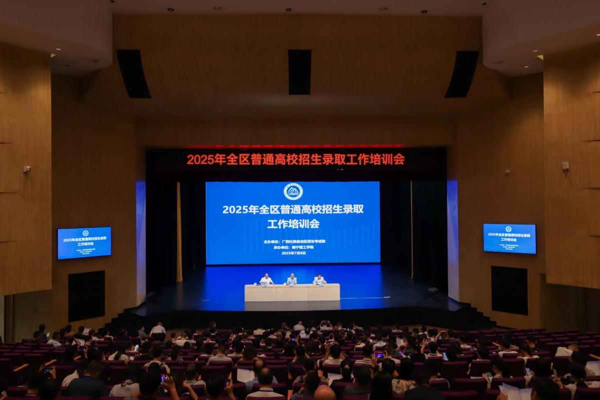 7月8日上午,由自治区招生考试院主办,买球官方网站承办的2025年全区普通高校招生录取工作培训会在买球南宁校区举行。自治区招生考试院院长刘冰出席会议并讲话;学校校长、党委副书记王金叶致欢迎辞;全区86所高校200余名参会代表参加本次录取工作培训。