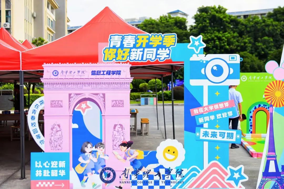 为了迎接新同学的到来,每个学院都用自己的方式,展现属于自己的特色和风采。商学院设愿望信箱,方便家长传递牵挂期许,还置互动展板,供新生用彩线连接家乡、性格标签与专业,交织出无限可能,助力新生安心开启校园生活;文理学院贴心策划新生生日会,为报到期间过生日的同学定制仪式,备上礼品与蛋糕;艺术与传媒学院为新生备好开学文具三件套,打造创意“连一连”打卡墙,供新生用彩线连接趣味选项完成专属互动;大数据与人工智能学院展示机器人迎新舞蹈,带新生沉浸式感受人工智能的奇妙;土木与工程学院设置微缩景观区,以精细工艺还原港珠澳大桥沉管隧道、埃菲尔铁塔钢铁骨架等建筑核心结构,让新生近距离感受建筑的细节之美;信息工程学院在大本营展示学院历年优秀学子学科竞赛中国家级、区级获奖作品,激发新生科技创新兴趣;国际教育学院同步展示国际化办学成果,呈现合作院校及成功案例,并设微留学项目学生风采区。
