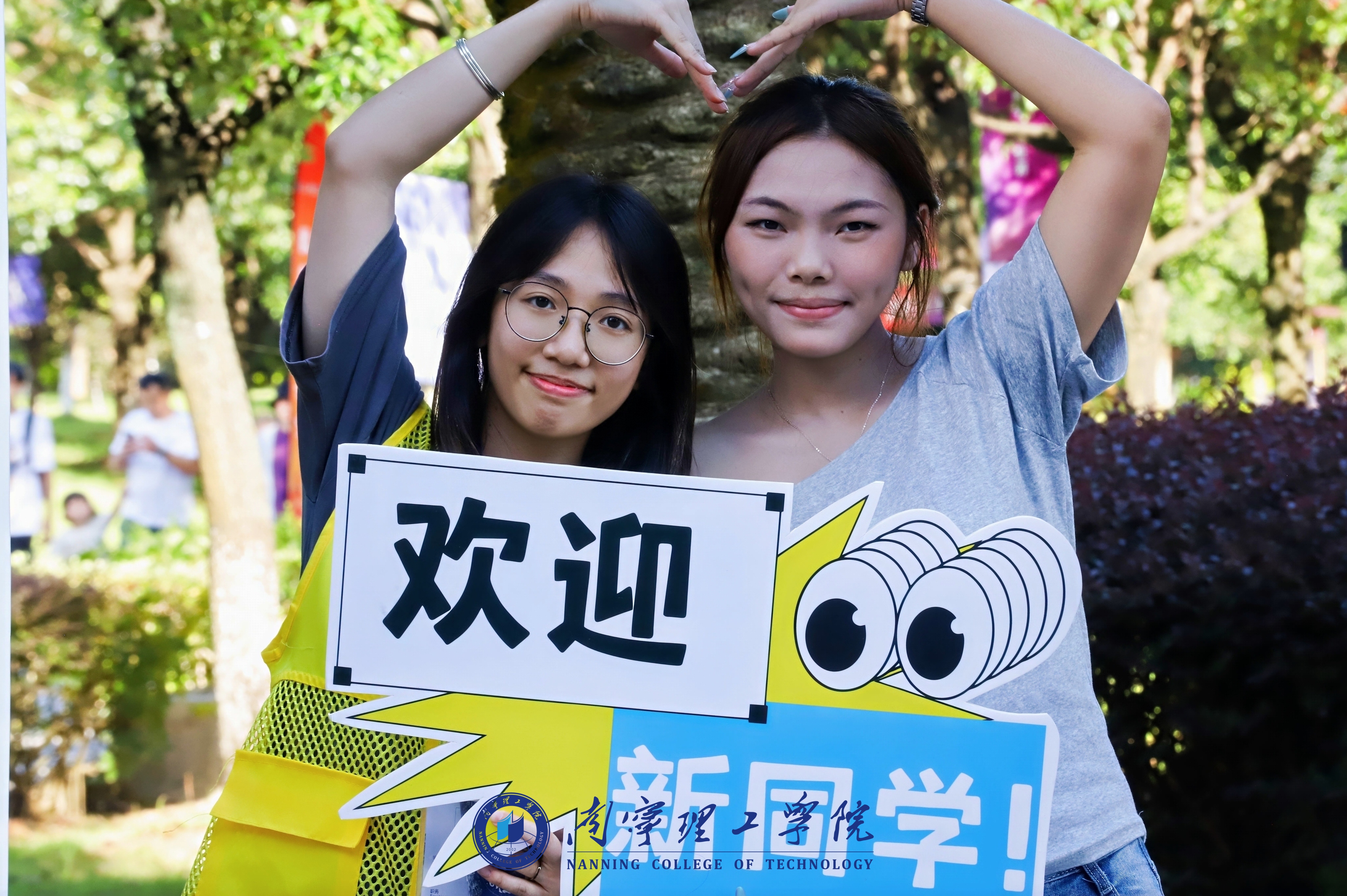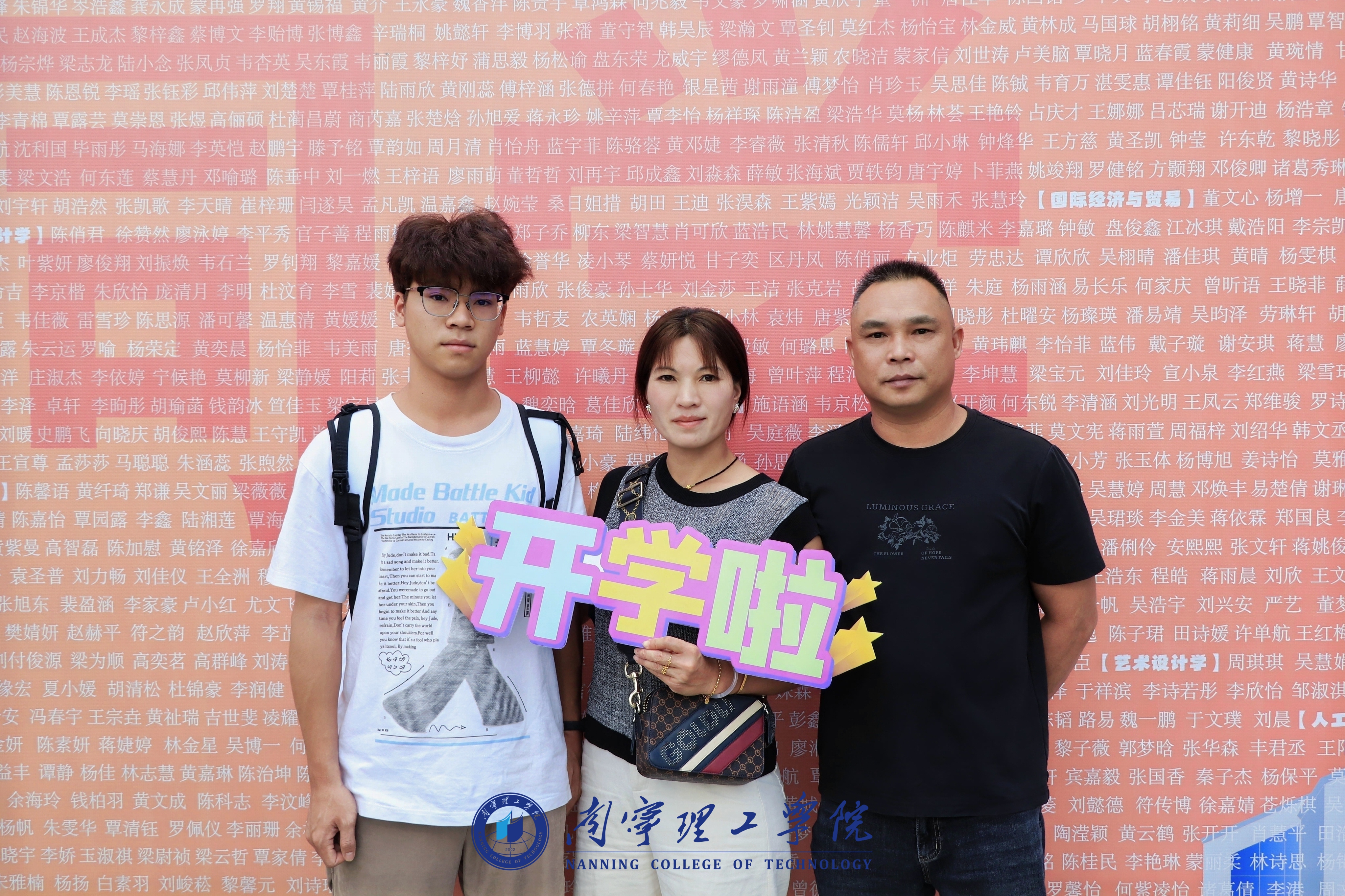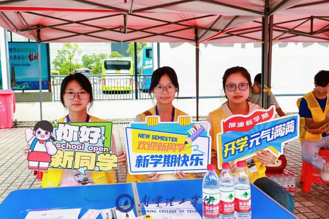 校园里随处可见“欢迎新同学”的标语和展板,还有立体合影展台和小型手持合影板等,营造出了浓浓的暖心氛围。新生们以及家长们在迎新展板前露出灿烂的笑容,留下一张张合影。