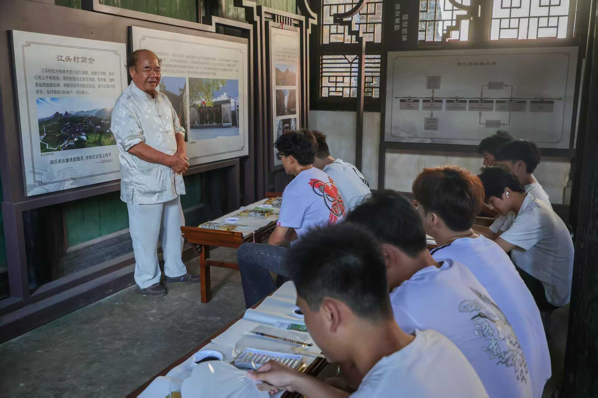 江头村素有“百年清官村”之美誉,廉政文化底蕴深厚。活动中,学生在讲解员的引导下深入体察周氏家族世代承袭的“爱莲”家风,聆听历代清官廉吏的真实故事,从“知行合一、清正为民”的传统家训中感悟廉洁自律的精神内涵。在浓厚的文化氛围中,同学们齐声诵读宋代名篇《爱莲说》,“出淤泥而不染,濯清涟而不妖”,琅琅书声回荡于古建筑之间,廉洁理念悄然浸润心田。