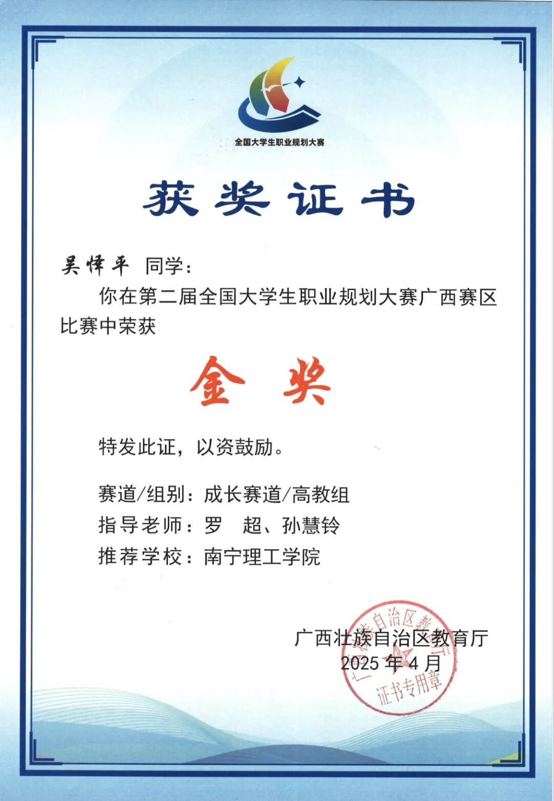 在比赛中,买球学子表现亮眼:吴怿平同学荣获全国总决赛铜奖一项;吴怿平同学和刘浩同学凭借清晰的职业定位、可行的发展规划及对行业趋势的精准把握,双双荣获广西赛区比赛金奖两项、孙大正同学荣获广西赛区比赛铜奖、揭成威同学也以扎实的规划方案获得广西赛区比赛优秀奖。