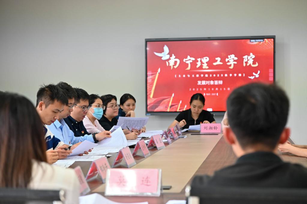 为全面考察我院入党积极分子的良好政治素养,进一步筛选出理论功底扎实、实践经验丰富的发展对象人选,我院于10月15日中午12点30分,在2517会议室开展发展对象选拔综合答辩会。会议由学院党员服务中心组织开展,党总支书记秦磊、党总支书记助理杨笑宇、党建组织员龙舒桦、发展对象负责人杨苗培及各支部书记出席担任评委。