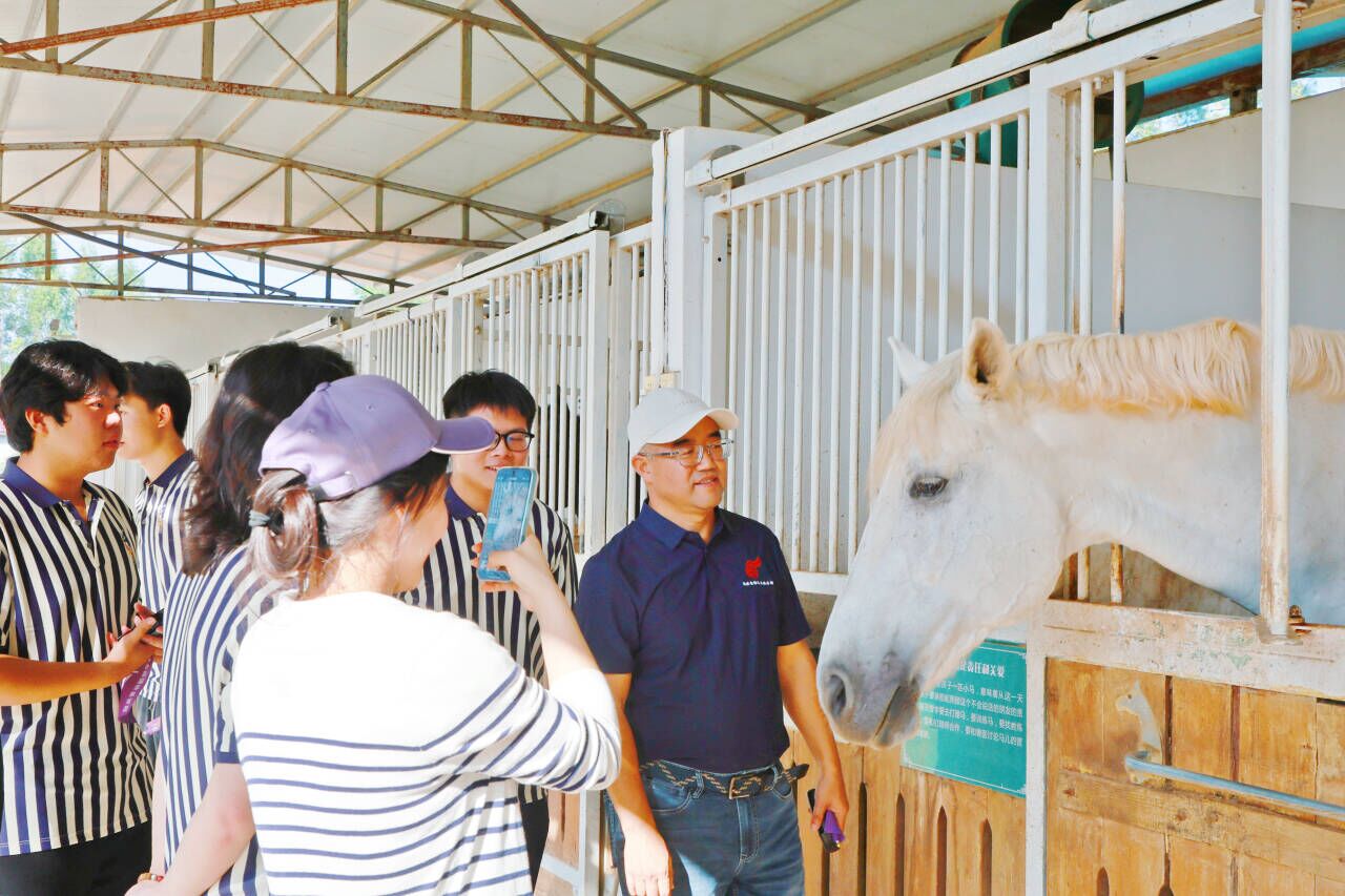 在马术俱乐部参观环节,学子们在专业教练的讲解下,系统了解马术运动的发展历程、国际赛事规则及不同国家的马术文化特色,直观感受这项运动中蕴含的“尊重、专注、协作”精神。