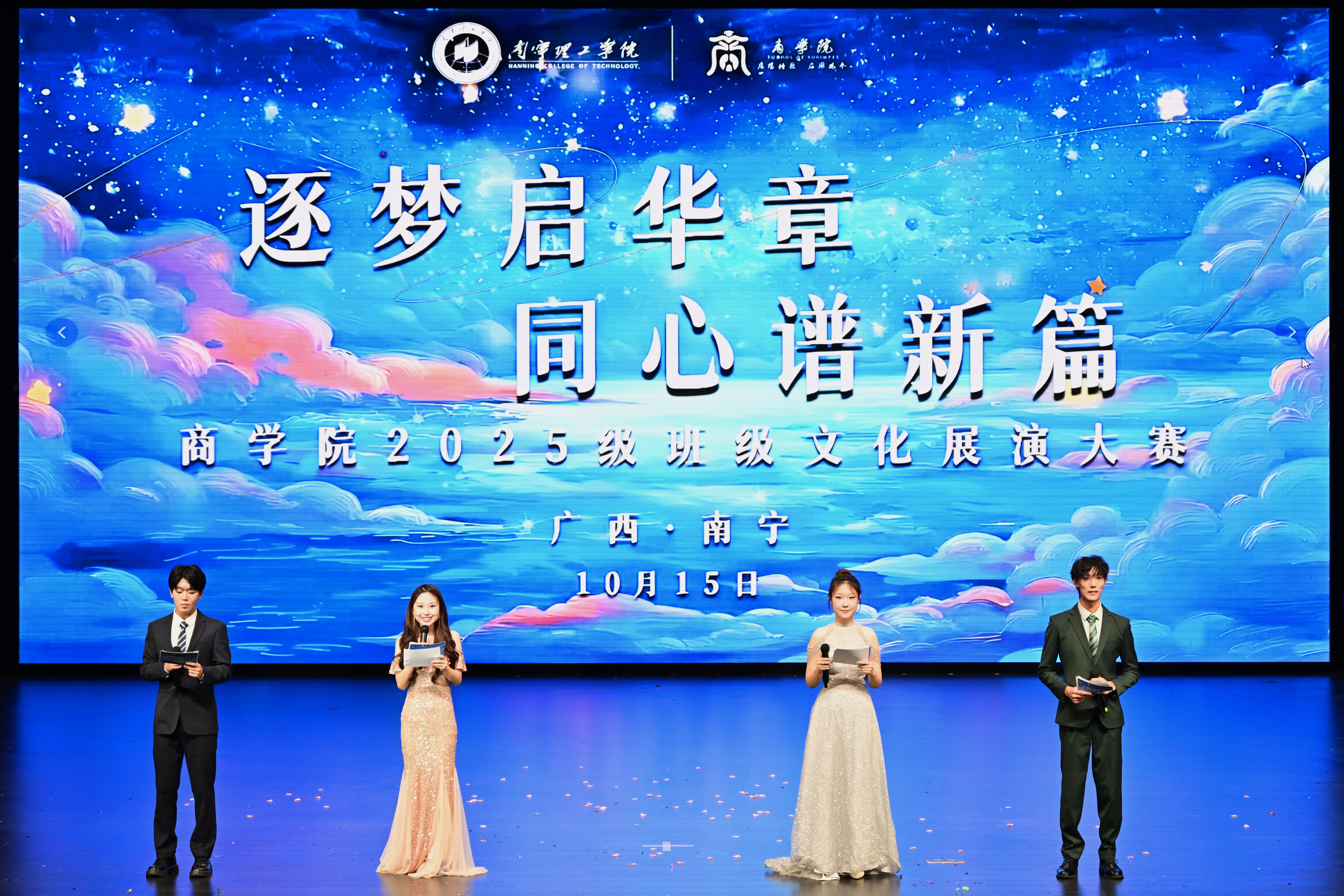 “这是一场青春与热爱的双向奔赴,更是班级风采的璀璨绽放。”10月15日晚,买球官方网站商学院“逐梦启华章,同心谱新篇”2025级班级文化展演大赛在东盟大剧院隆重举行。舞台光影交织,青春朝气扑面而来,四位主持人盛装登场,以饱满的热情点燃了整个夜晚,宣告一场属于新生的文化盛宴在璀璨的剧院中正式开启。