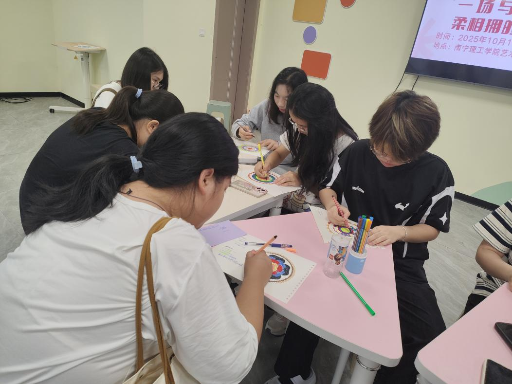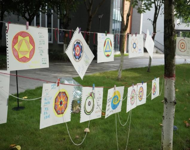 活动以“曼陀罗绘心”启程,同学们通过绘制对称而重复的图案,在色彩的流动与结构的构建中,逐渐沉静思绪、梳理情感。这一环节不仅帮助同学们在秩序感中获得心灵的安宁,也开启了与自我对话的第一扇窗。