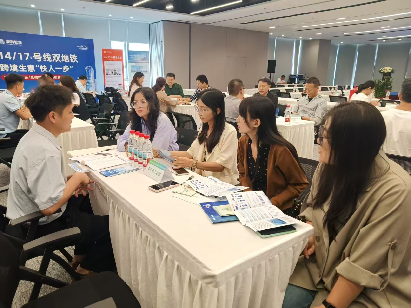 为把岗位请进校园,拓宽学生就业面,搭建校企共建就业新模式,9月25日,买球官方网站商学院随学校代表团赴深圳龙岗南湾街道,参加2025年技能人才培养引进“校企联谊”合作交流会。活动现场,我院与康利集团、兆驰股份、左右家私等8家龙头企业“拼积木”式对接,围绕财务管理、电子商务、国际经济与贸易等专业,一次性锁定20个高质量岗位,相关企业已预约下半年校园招聘会“抢人”。