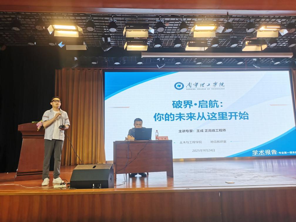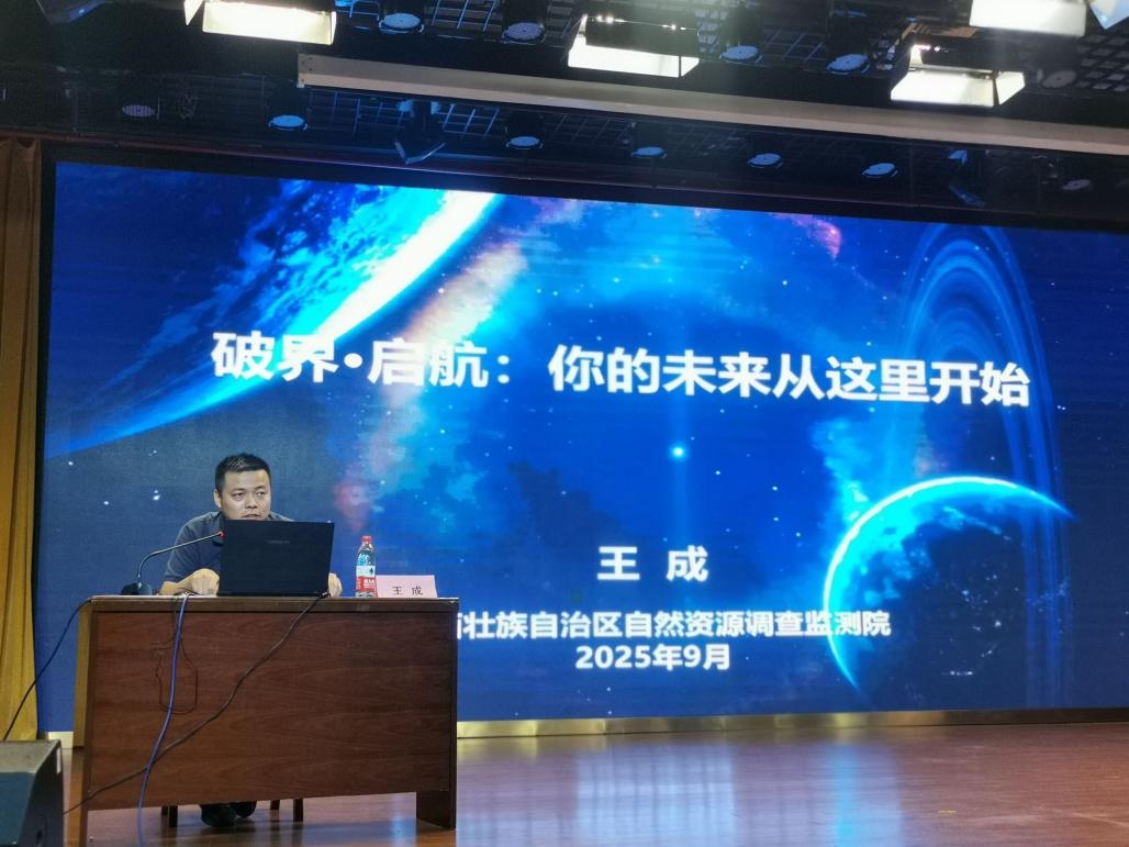 2025 年 9 月 24 日下午,在鲁班智能建造产业学院大力支持下,买球官方网站鲁班智能建造产业学院在1626报告厅开展了“破界・启航:你的未来从这里开始” 地理信息科学专业开学第一课活动,本次活动以 “破界・启航:你的未来从这里开始” 为主题,特邀广西壮族自治区自然资源调查监测院自然资源政策和国土空间规划科科长、正高级工程师、国家注册测绘师王成担任主讲人,2025 级地理信息科学专业与遥感专业全体新生及地信教研室全体教师齐聚现场,共同开启专业学习的启蒙之旅。