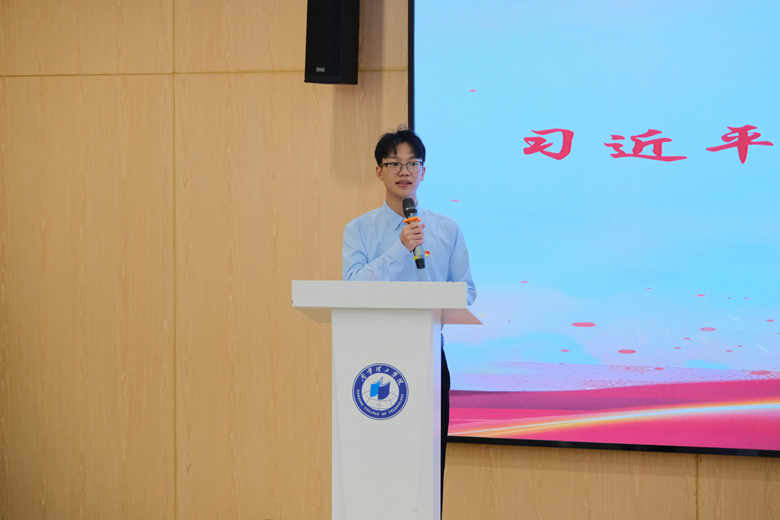 习近平新时代中国特色社会主义思想青年宣讲中心执行主席揭成威作为学生代表发言。他承诺,宣讲中心全体成员将积极投身理论学习和宣讲实践,用青春的声音传递理论的力量。