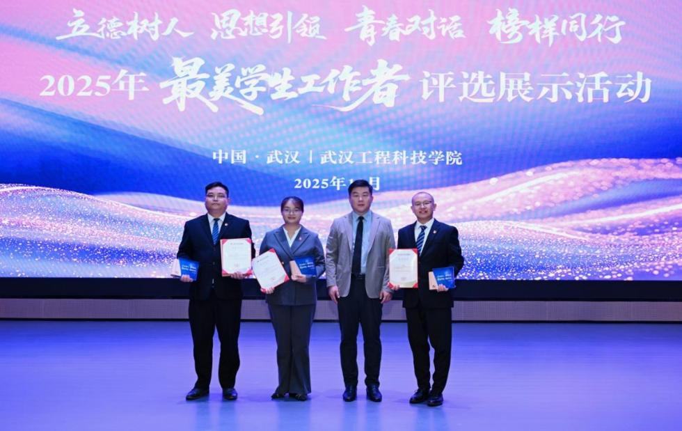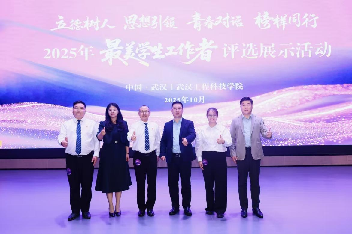 10月16日-18日,2025年“最美学生工作者”评选展示活动在武汉工程科技学院举行。学校党委副书记、副校长韩乔受邀参加活动,王辉、邓超凡、罗超三位辅导员代表学校参加评选。凭借扎实理论基础、丰富工作经验和较强应赛能力,王辉、邓超凡两位老师在此次活动中获“最美学生工作者”荣誉称号,罗超老师获“优秀辅导员”荣誉称号。