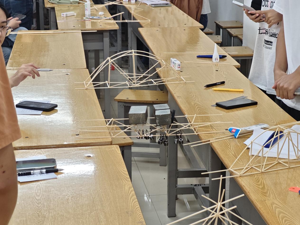 活动伊始,参赛同学陆续签到并领取结构材料包。在工作人员详细讲解规则后,大家迅速投入桥梁模型的构建中。限时60分钟内,同学们充分发挥专业所学,设计并制作出跨度35cm的桥梁模型,展现出扎实的工程素养与创新思维。