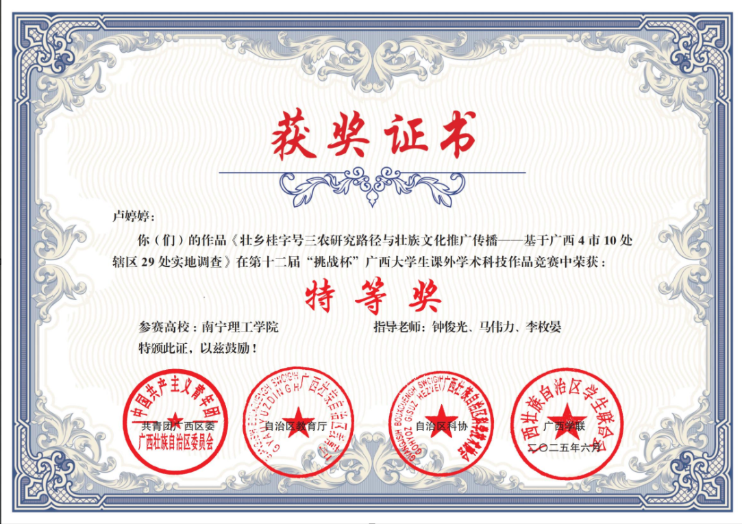 图18.第十二届“挑战杯”广西大学生课外学术科技作品竞赛特等奖