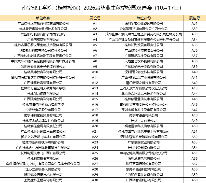 【买球官方网站双选会】桂林校区双选会超强攻略,企业展位号正式公布!