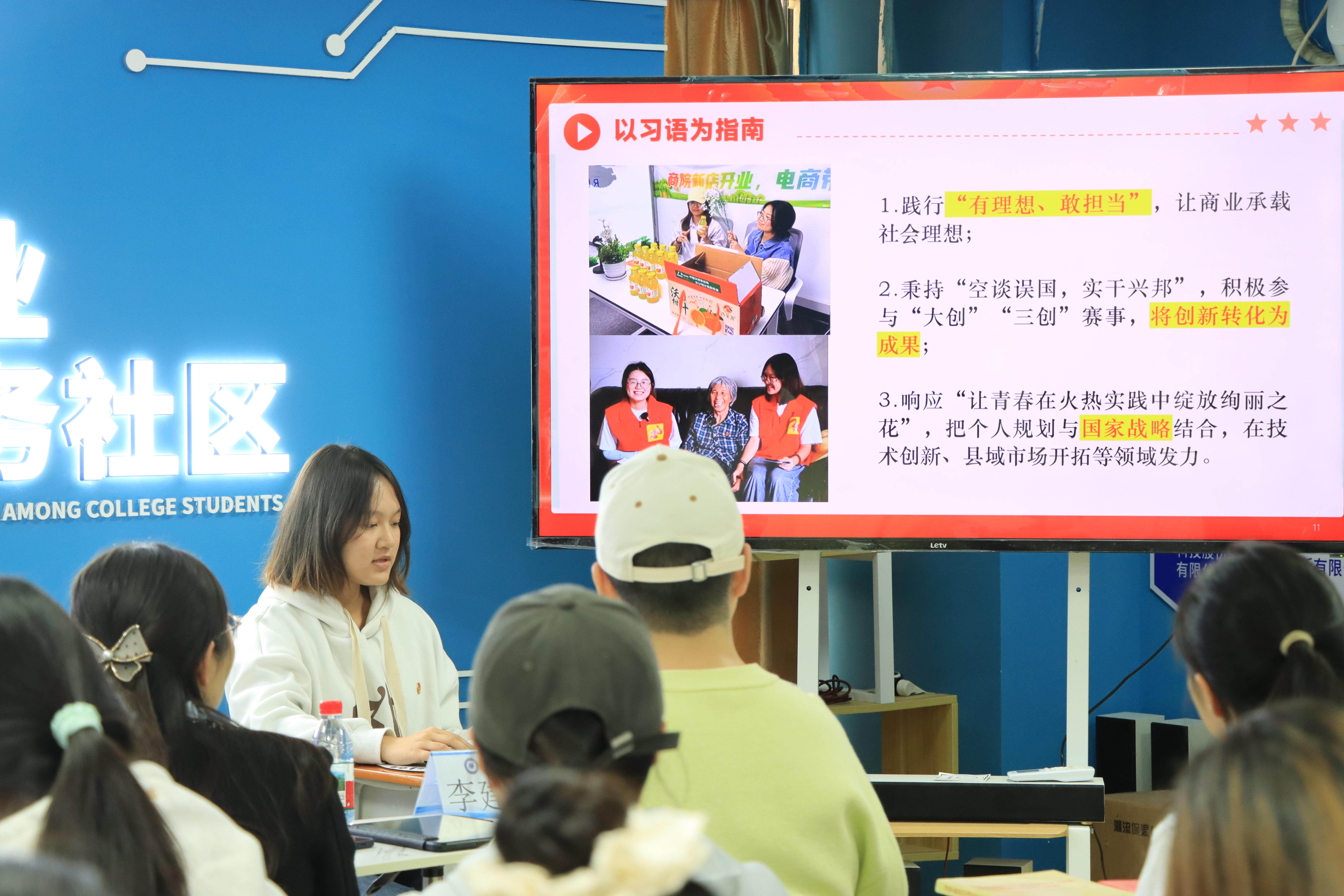 活动中,党总支书记姚顺良主讲《正确认识中国经济热点问题》,结合习近平经济思想解析新时代发展战略与商业经济的联系,为商科学子提供宏观视角。专任老师李建宸开展“智慧荐读”,聚焦经济学理论分享,引导学生将理论方法论转化为实践创新点。青马班学子在分享环节围绕数字经济、供应链现代化等前沿趋势,探讨理论应用案例与职业规划,展现“学思用贯通、知信行统一”的自觉追求。