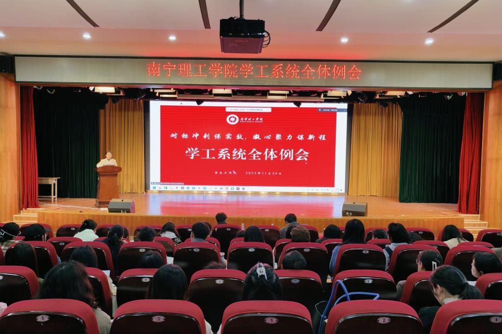 会议最后,学校党委副书记、副校长韩乔作总结讲话并提出五点要求。一是要坚持多元赋能,构建高质量就业新格局。立足学生长远发展,整合校内外优质资源,全面提升学生的综合素养与核心竞争力,全力助推学生实现更高质量就业。二是要深化国际教育,培育具备全球竞争力的人才。充分发挥学校国际教育育人功能,深度融入人才培养全过程,着力增强学生的国际视野、跨文化沟通能力与提升软实力背景。三是要打造品牌活动,强化实践育人实效。以“中国—东盟国际大学生短视频大赛”品牌项目为重要抓手,丰富学生第二课堂载体,为学生搭建展示才华、锻炼能力的实践平台,切实提升学生的创新精神与实践操作能力。四是要筑牢安全底线,营造和谐稳定育人环境。牢固树立“安全底线”的责任意识,汲取经验教训,将学生安全管理做深、做细、做实,强化隐患排查与舆情监测,确保校园持续安全稳定,为学生成长成才保驾护航。五是要加强队伍建设,推动辅导员专业化高质量发展。要深刻认同学校文化价值观,通过系统培训、以赛促建、考核激励等方式,促进辅导员队伍向“专、精、优”方向发展,实现个人成长与育人成效的双提升。