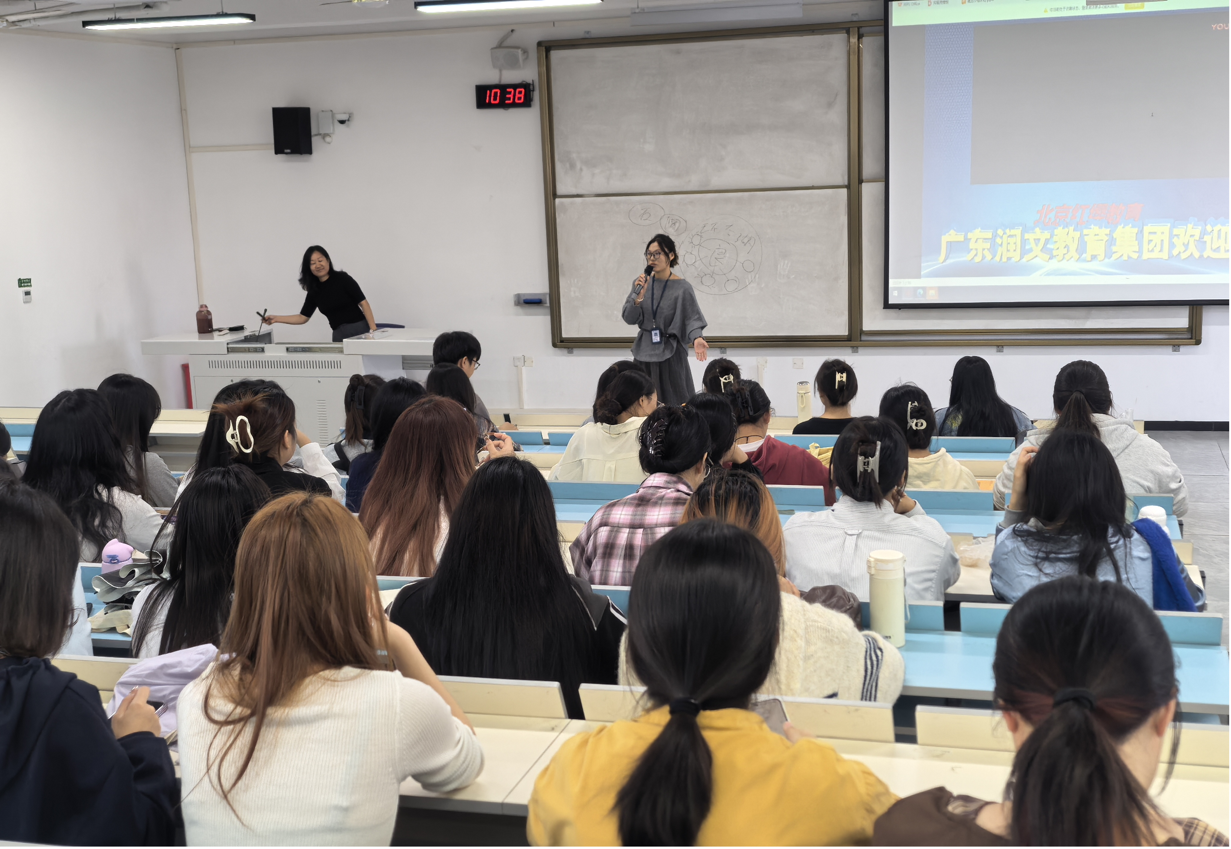 为精准搭建校企合作桥梁,助力我院学子高质量就业,10月28日上午,由文理学院联合广东润文幼教集团主办的学前教育专场招聘宣讲会在南宁校区A3403教室成功举行。此次活动精准面向学前教育、小学教育及英语等专业学生,吸引了大量应届毕业生参会。
