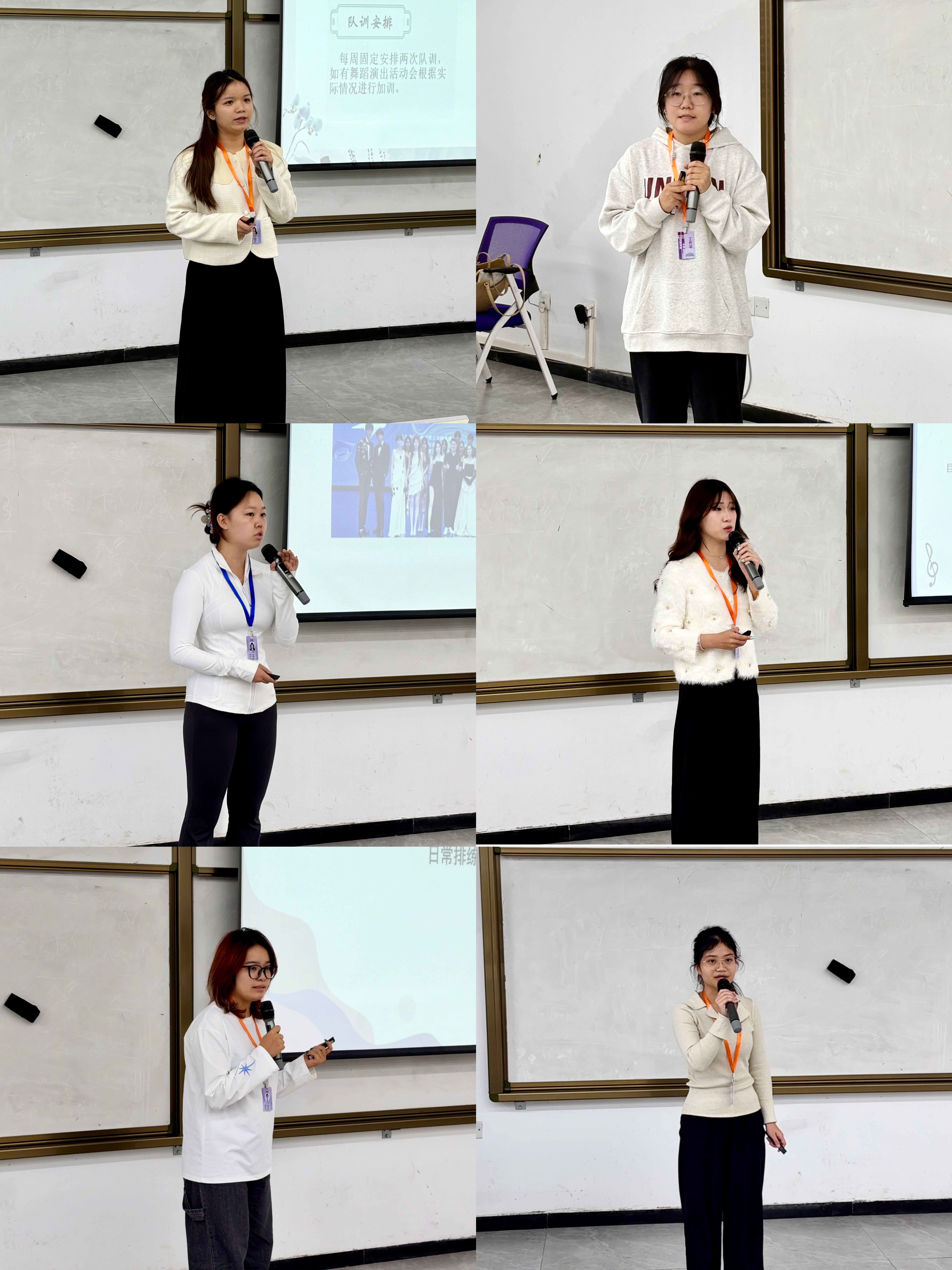 会议伊始,歌唱队、舞蹈队、民舞队、器乐队、主持队、礼模队各队伍代表相继汇报近期重点工作。各代表聚焦日常训练、演出实践及元旦晚会节目打磨等关键任务,对各自工作开展情况进行陈述,汇报内容扎实、亮点突出,生动展现了各队伍团结协作、积极进取的精神风貌。