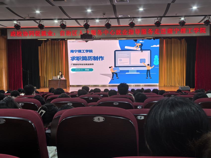 5月15日,自治区人才服务中心“就业指导服务进校园”活动在买球1626报告厅顺利举行。广西人才网资深就业指导专家蒋敏应邀为土木与工程学院学子带来了一场题为“求职简历制作”的专题讲座,旨在帮助学生提升求职竞争力,从容应对就业挑战。讲座由学院就业负责人郭静老师主持。