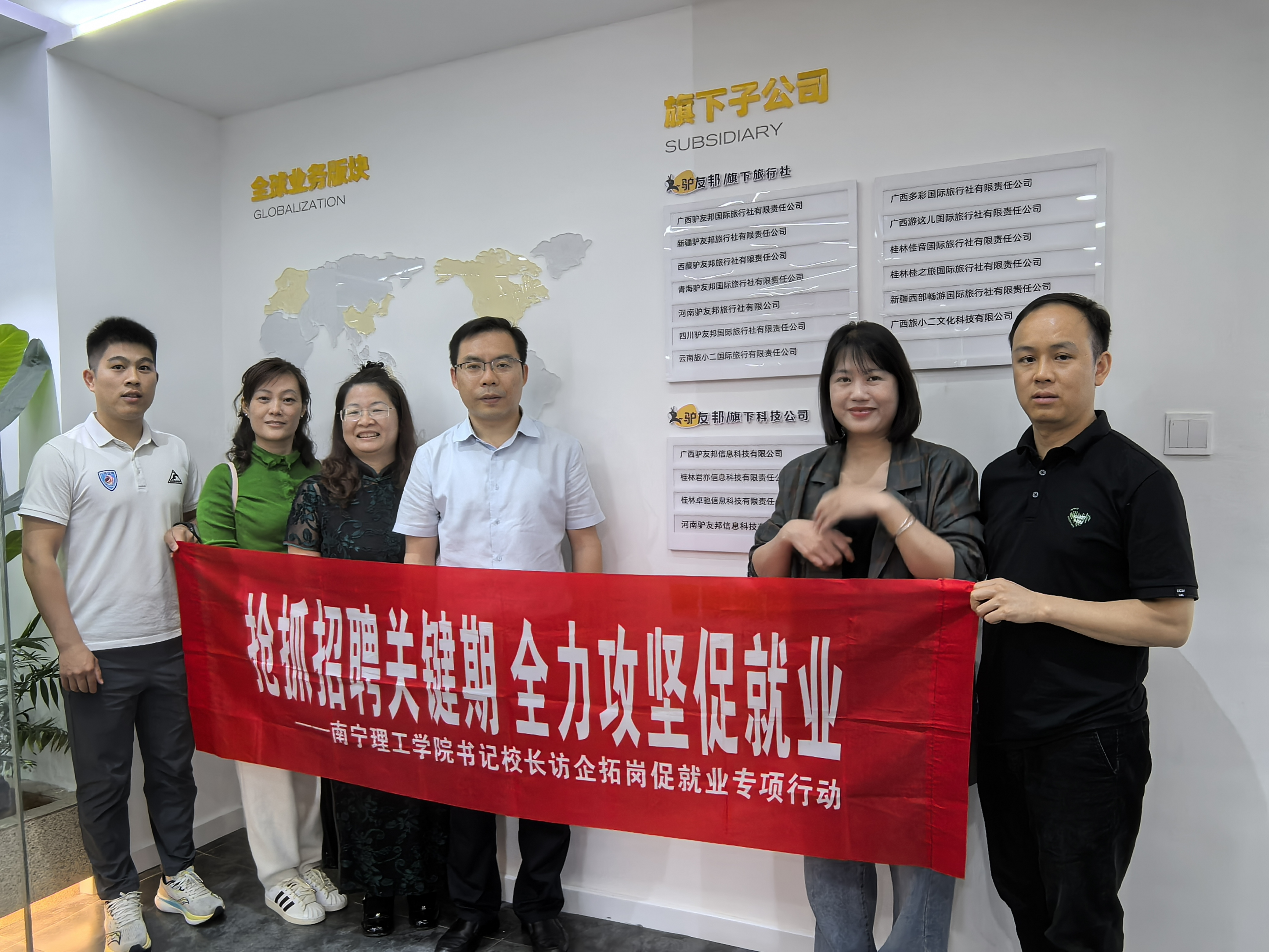 在当前严峻的就业形势下,为切实解决高校毕业生就业难题,推动毕业生高质量就业,2025年4月30日,买球官方网站再次积极开展“访企拓岗促就业”专项行动。本次走访主要由校党委书记金飞、商学院党总支书记姚顺良带队,前往广西学梓服饰有限公司、桂林君亦信息科技有限责任公司以及桂林卓驰信息科技有限公司。通过深入企业走访调研、拓展就业岗位、深化校企合作等一系列举措,为毕业生就业搭建广阔平台,助力地方经济发展迈出关键一步。