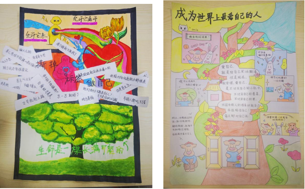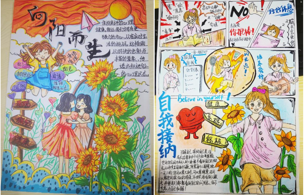 围绕自我接纳、情绪管理、人际交往、学业压力等心理相关方向,面向同学们征稿,共收到50余幅原创漫画作品。此次漫画作品征集,既让同学们在画笔与纸张的摩擦中抒发内心情绪,又让同学们进一步察觉情绪、认识情绪、管理情绪。