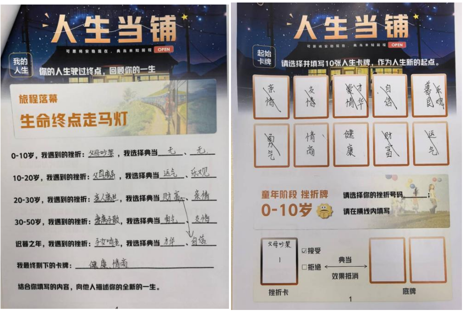 工作室创新开展“人生当铺”团体活动,让同学们在角色扮演中进行自我反思,了解生命的独特价值与有限性,活动参与人数10余人。活动采用故事化叙事,引导同学们重置人生,体验不同生命阶段可能遇到的挫折,并以重来一次的资质探索人生新可能。此次活动让同学们在积极心理学、故事化叙事中正视遗憾、重构认知,提升受挫能力,增强生命韧性。