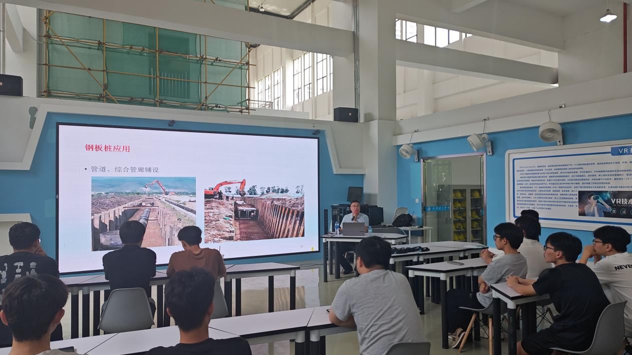 秦副院长围绕目前桥梁、市政、房屋建筑基础施工常见的基坑支护方法展开,详细讲解了拉森钢板桩材料截面特性、勘察设计对支护方案的重要性、施工方法、施工流程及拆除重复利用等各个环节技术要点,开拓了同学们的专业知识与工程眼界。