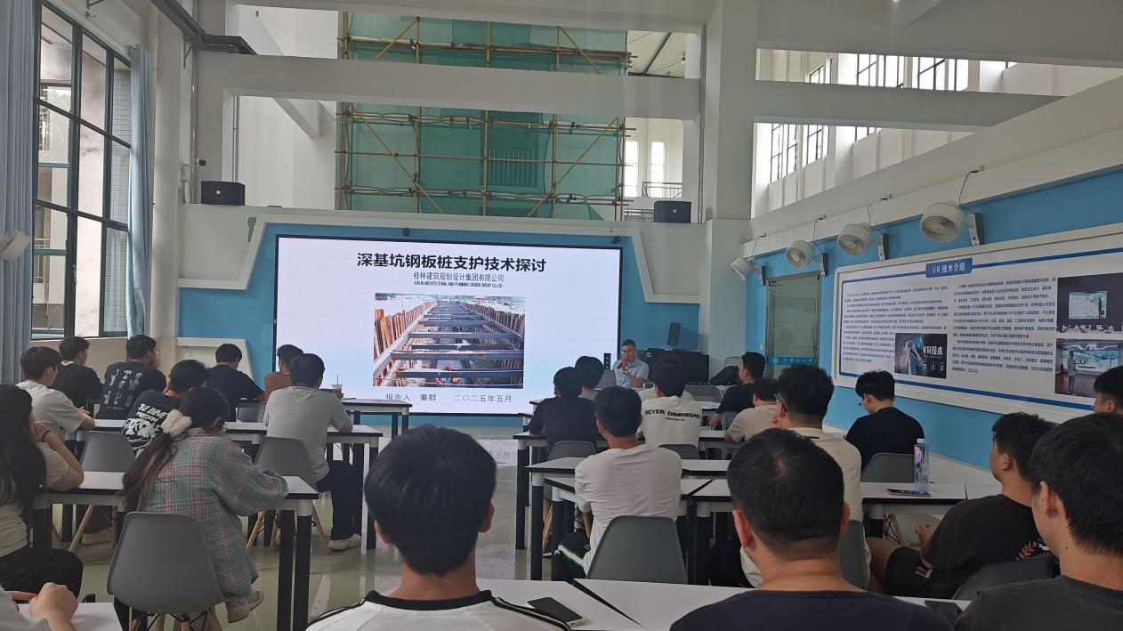 2025年5月9日,由鲁班绿智数字智能产业学院支持的产业专家进校园学术讲座活动在数字建造工程中心顺利举行。本次学术讲座邀请桂林建筑规划设计集团有限公司勘察设计分院副院长、高级工程师秦群主讲,土木22级150多名学生参加。