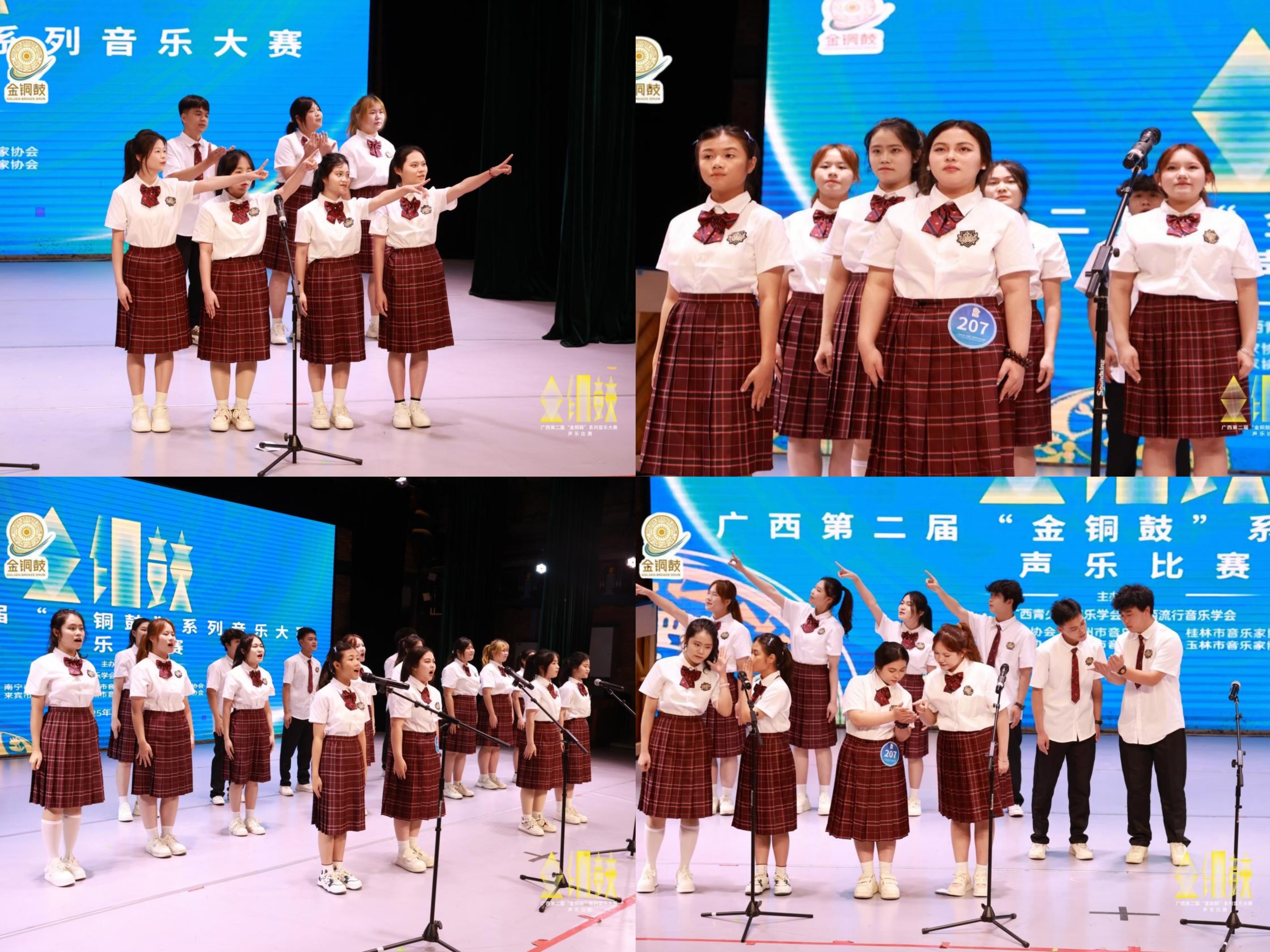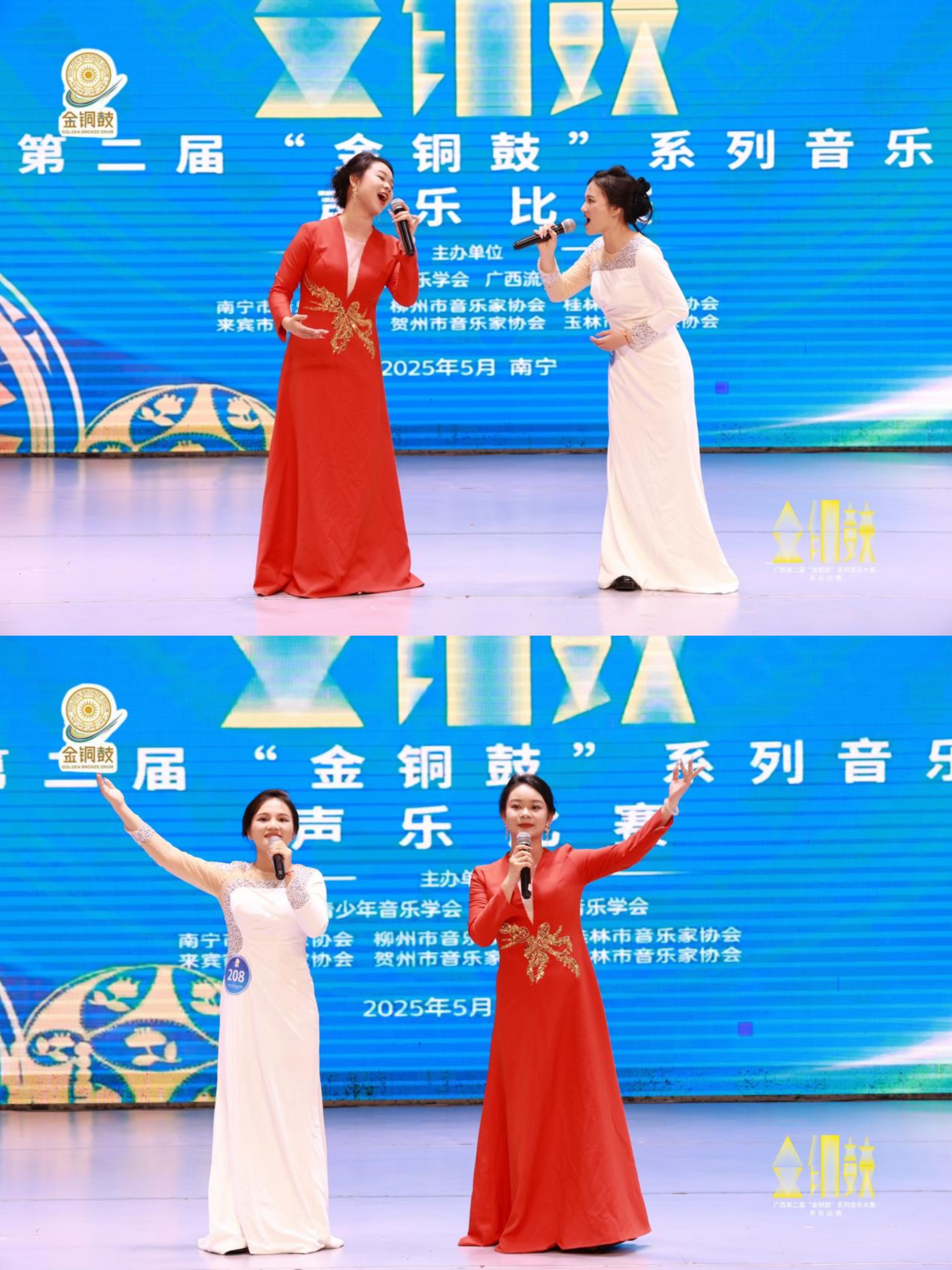2025 年 5 月 11 日,广西第二届 “金铜鼓” 系列音乐大赛南宁地区声乐比赛在南宁市江南区百益上河城艺术中心隆重举行。买球官方网站文理学院大学生艺术团以优秀的跨界表现力惊艳全场,凭借《飞云之下》《敕勒歌》两首风格迥异的作品,分获青年组组合金奖与银奖,以青春之声书写美育教育的璀璨篇章。