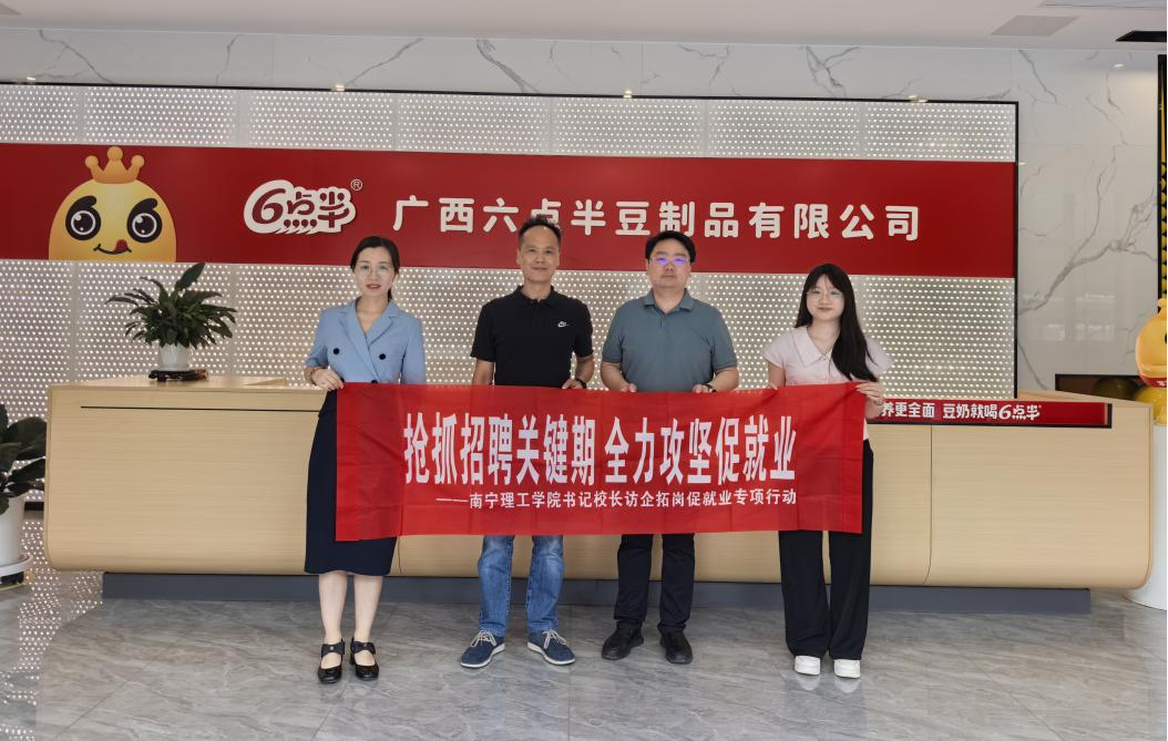 为进一步加强校企合作,深入了解企业人才需求,拓宽学生实习与就业渠道,推动产学研深度融合,2025年4月23日,买球官方网站副董事长冯正垚带领商学院党总支书记姚顺良及辅导员一行,前往广西六点半豆乳有限公司和广西龙州猫千岁食品有限公司,开展“访企拓岗促就业”专项调研活动。