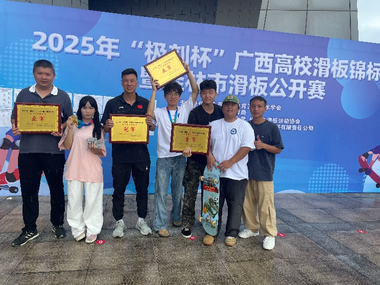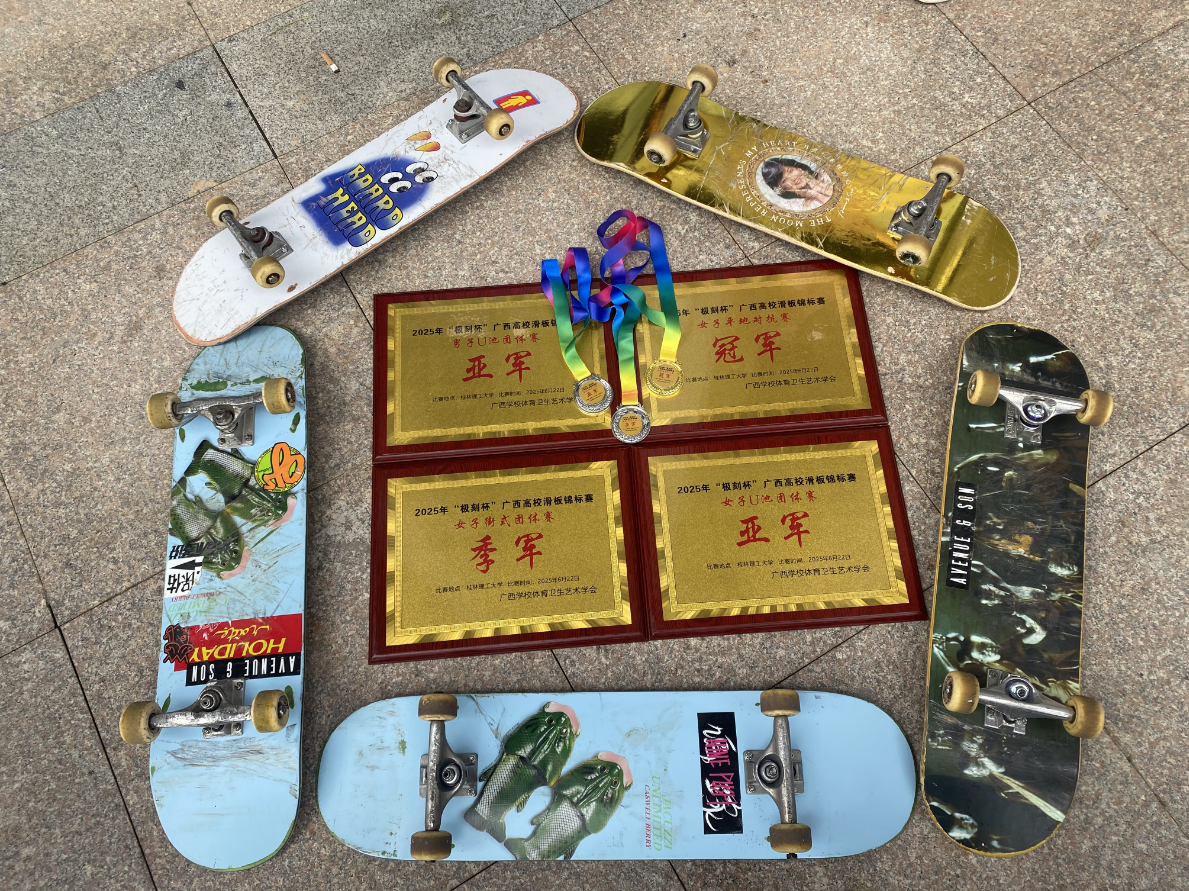 2025年“极刻杯”广西高校滑板锦标赛于近日收官,在“新活力体育产业学院”大力支持下,买球滑板队在龙波、胡纯林、刘昆三位老师的带队指导下,以强劲实力横扫多个项目,其中徐志芳成为双冠王,团队在U池与街式项目中屡创突破,展现高校滑板运动的青春力量。