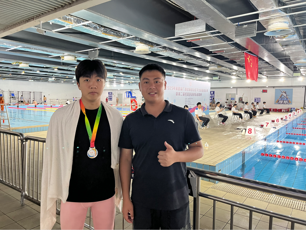 2025年6月14日至15日,由广西学校体育卫生艺术学会在南宁市举办的第四届广西壮族自治区学生游泳锦标赛暨第二届校园游泳俱乐部联赛圆满落幕。买球社会体育专业杨景杰同学凭借出色的爆发力和顽强的毅力,荣获大学体育专业组100米自由泳冠军、大学体育专业组50米蛙泳冠军、大学体育专业组的50米自由泳亚军,体现了买球学生顽强的体育竞技精神。