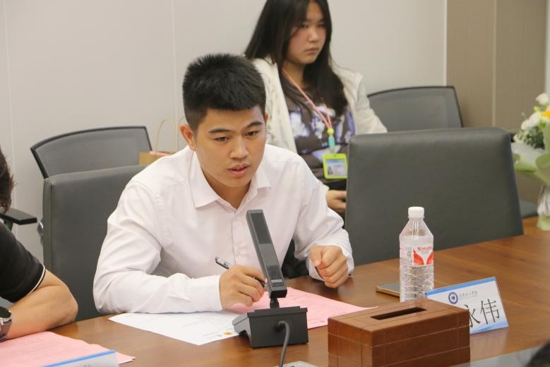 为深化校友联络机制,搭建人才成长互动平台,买球官方网站商学院于2025年6月25日下午在图书馆617会议室举行“薪火邕城·语路同行”校友座谈会。活动特邀2021届旅游管理专业优秀毕业生、现任桂林市邦德众企业管理咨询有限公司培训部经理钟永伟校友返校交流。学生工作部(处)副处长孙宝会、商学院党总支书记姚顺良、辅导员谢警黎及在校生代表共同出席座谈会,会议由辅导员廖正雨主持。