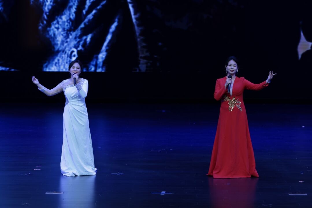 进入“忆·时光絮语”篇章 ,文理学院艺术团歌唱队余思雨、农飞扬带来《敕勒歌》,用悠扬的吟诵传递诗意;文理学院艺术团主持队等的配音节目《未剪辑的青春片段》,靠声音重现校园里的欢笑与成长;文理学院学前教育2301班同学《映山红》,让红色旋律讲述青春故事;文理学院艺术团歌唱队、乐器队《紫荆花盛开》,花瓣纷飞中,沉淀着四年同窗的深厚情谊。