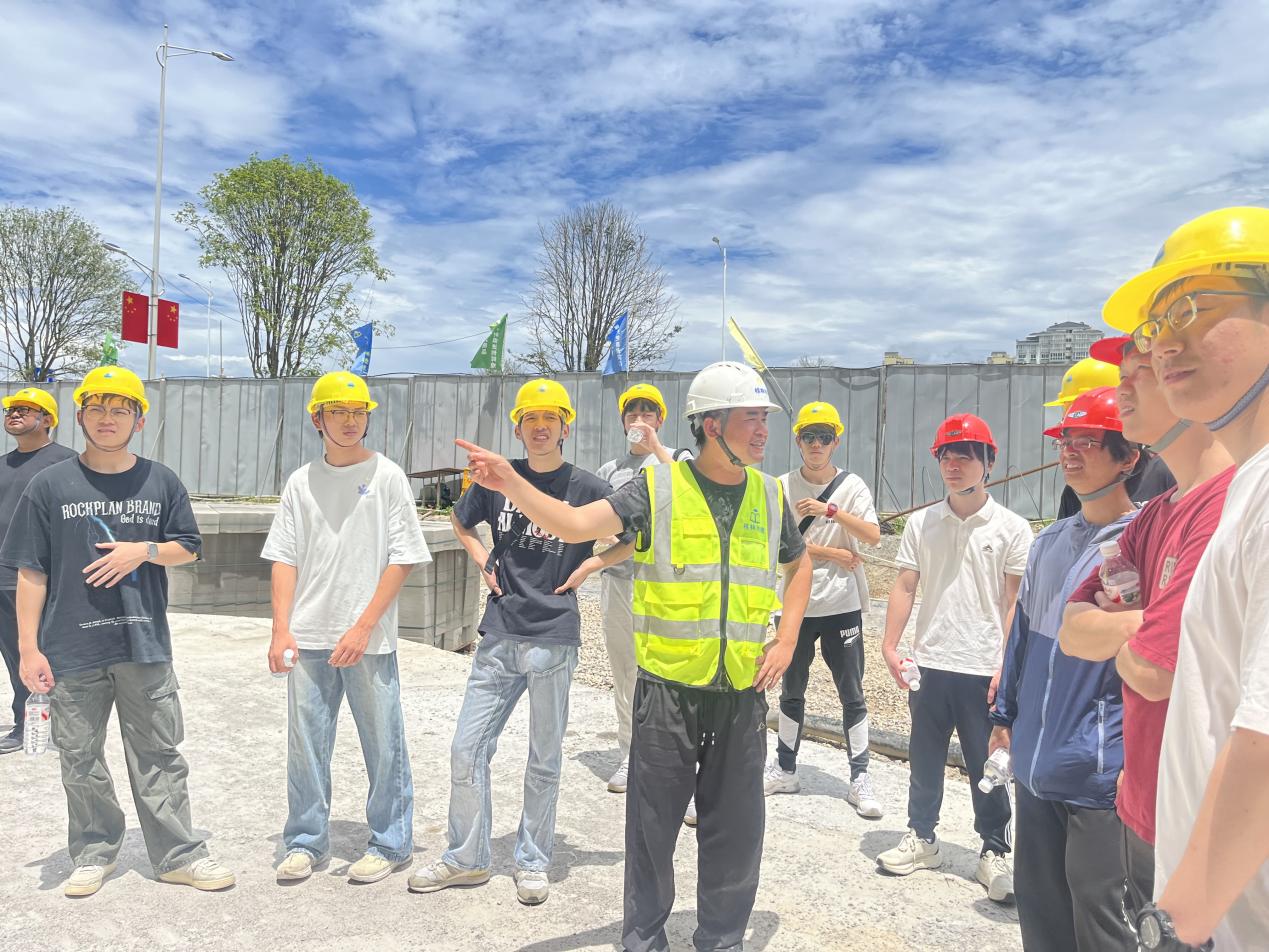 在项目现场,施工方技术负责人详细向学生介绍了工程概况、施工组织设计及关键技术应用,着重对主体工程施工工艺、质量管控及安全管理等问题作讲解。