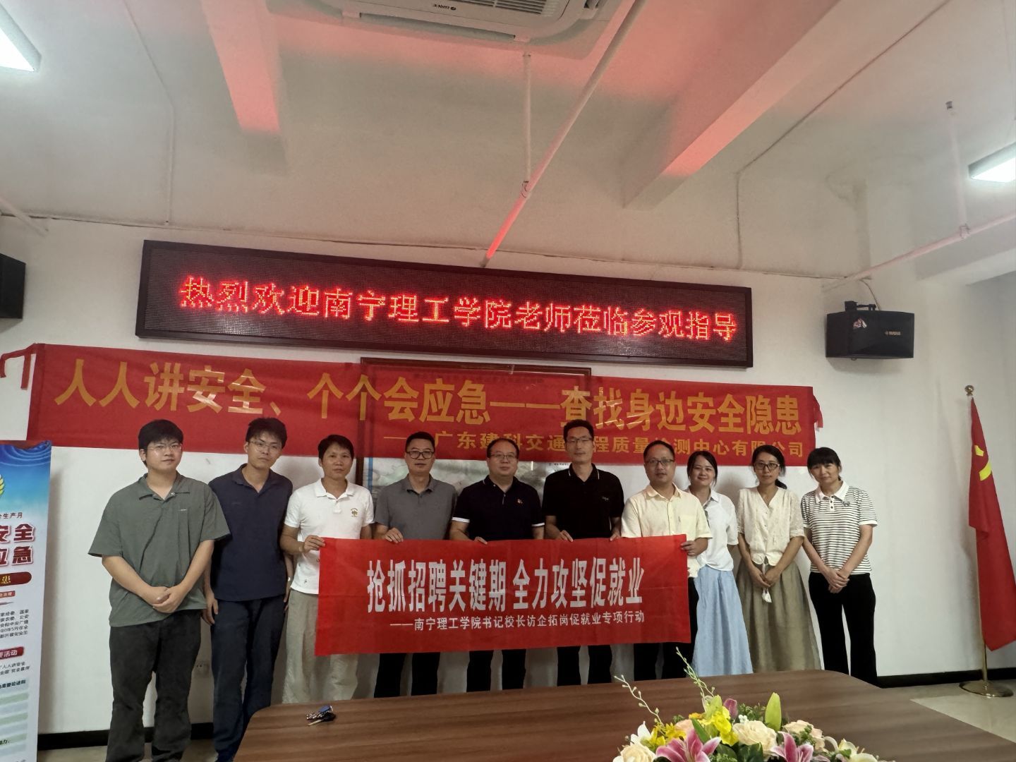 近日,土木与工程学院土木工程教研室教师代表一行前往广东建科交通工程质量检测中心有限公司开展参观考察交流活动。此次行程旨在进一步深化校企合作、探索产学研融合新模式,并实地探访在该公司就职的往届毕业生,了解其职业发展状况。