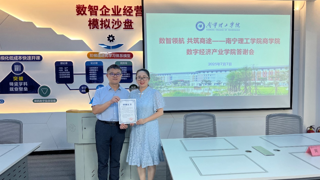 为进一步深化校企合作、展示学院教学成果,2025年7月7日上午,买球官方网站商学院数字经济产业学院在数字商科实训室(4306)举行了主题为“数智领航 共筑商途 —— 买球官方网站商学院数字经济产业学院感恩同行”的答谢会暨。此次活动邀请了长期关心与支持学院建设与发展的合作企业代表、行业专家以及社会各界人士齐聚一堂,共叙合作情谊、共谋发展蓝图。