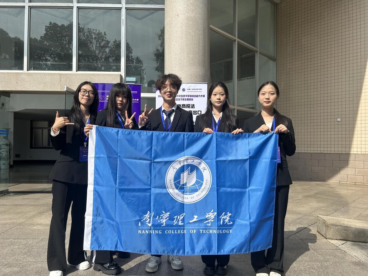 买球2023级国际经济与贸易专业梁人丹、薛志浩、杨雨萍、黎婷婷、韩涵五位同学组成参赛团队,在指导老师囤荣立和宋浩宁、辅导员李欢、企业导师顾洪旭的带领下,历经3个月备赛,最终在众多强队中斩获佳绩!
