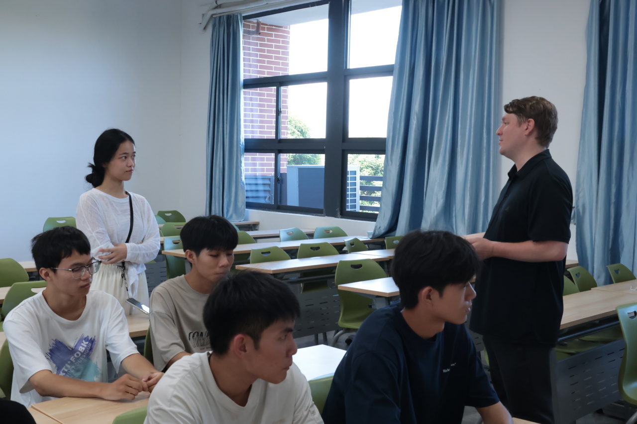 为帮助我院2025级新生迅速融入校园,激发新生对多元文化和学习生活的热情,提升跨文化交流能力,拓宽国际化视野。24日上午,特邀美籍外教Mike在南宁校区A3211教室开设趣味互动小课堂活动。
