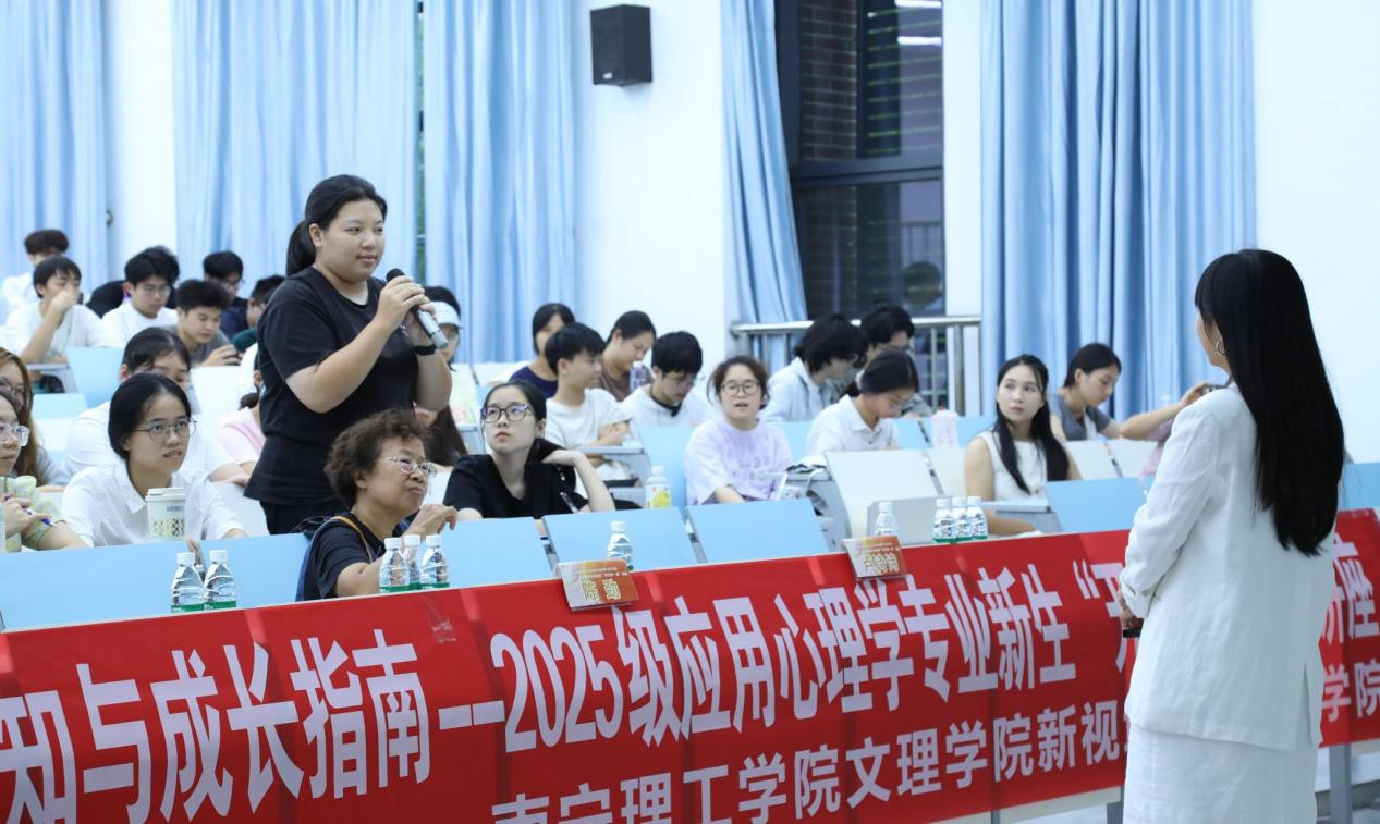 互动问答环节中气氛热烈,新生围绕“企业心理咨询与学校心理辅导的差异”“如何更好学习应用心理学专业”等问题积极提问。卢老师逐一耐心解答,并结合当前的就业趋势,鼓励新生关注青少年的心理的细分领域,了解学校心理老师招聘信息、拓宽职业与就业视野。