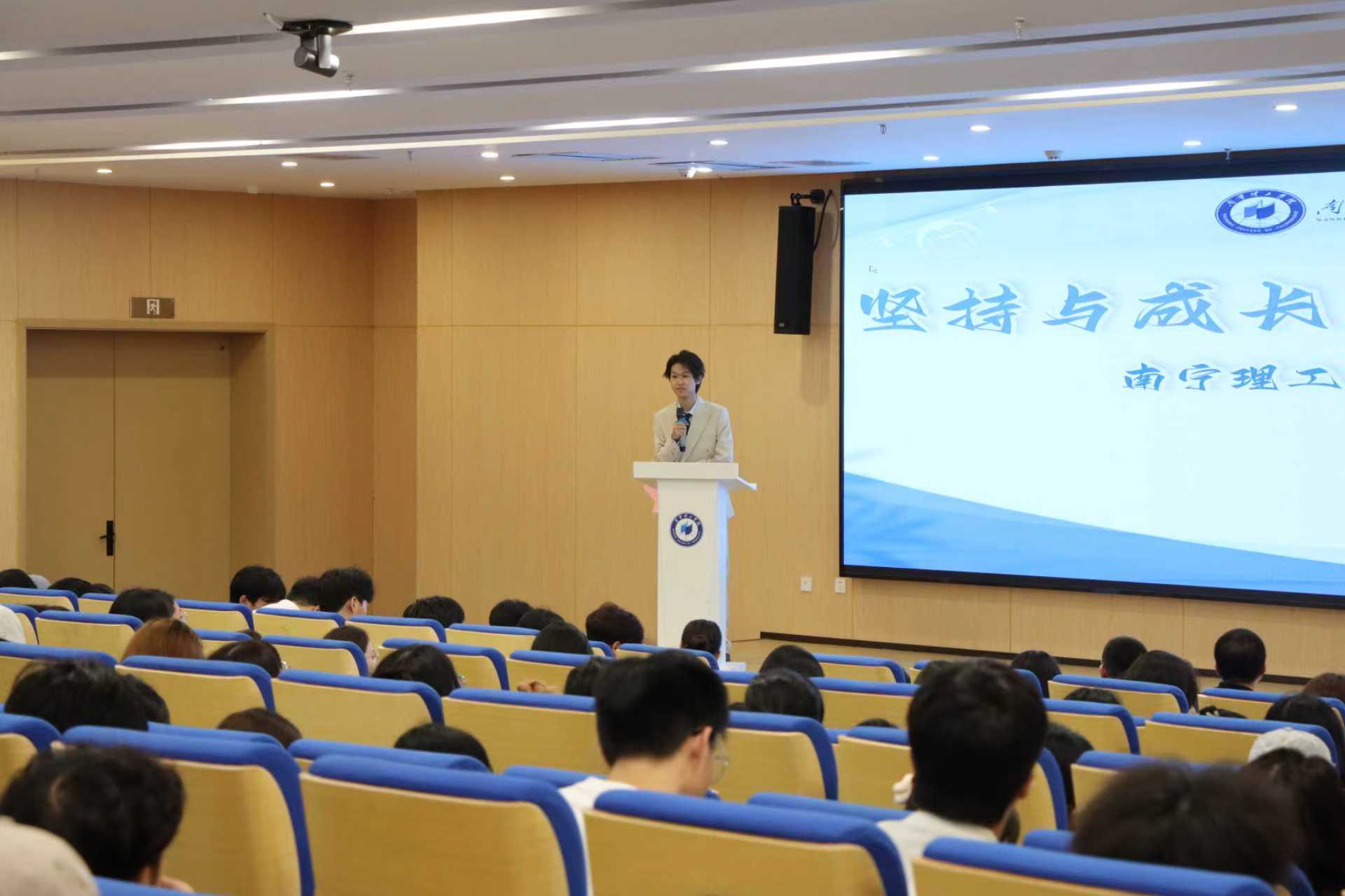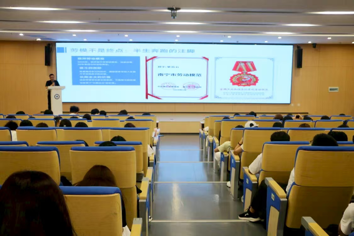 为了给予学生精神指引和行动参考,商学院于2025年9月17日晚8点在图书馆一楼119报告厅特邀南宁市劳动模范、南宁产投铝基新材料集团设备能源部经理梁治石参与买球官方网站家校联盟“鲲鹏计划”,以“为自己努力奔跑的半生风雨”为题开展讲座,他以真实质朴的语言、跌宕起伏的职场经历,向在座师生讲述了一段关于坚持、成长与家国相连的动人故事,为买球学子点亮前行的道路。