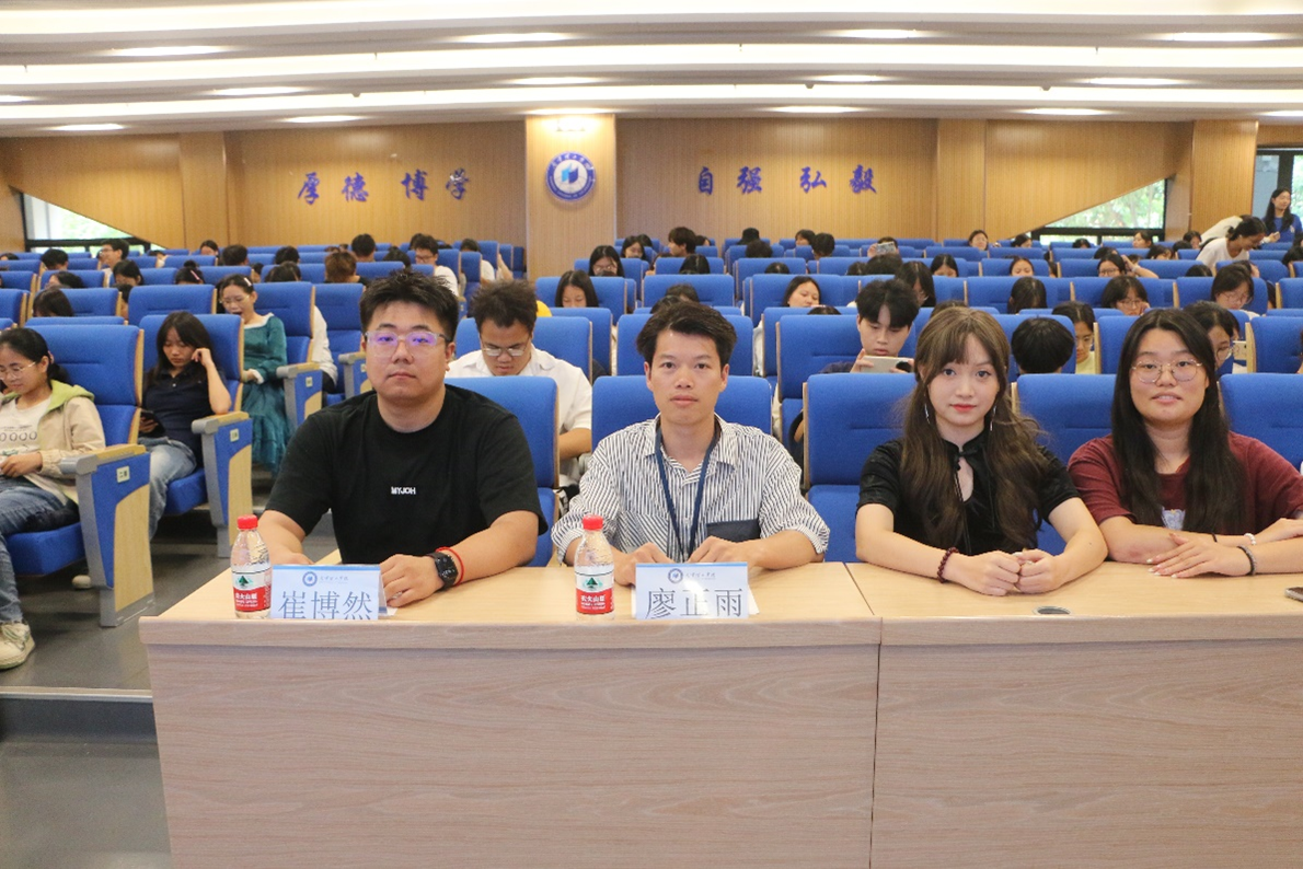 活动伊始,崔博然结合个人成长经历,围绕大学适应、能力积累、职业规划与心态调整等关键议题展开分享。他建议大一阶段应注重适应与探索,大二侧重学习与积累,大四则需全力冲刺与实现转型。在谈及综合能力提升时,他分析了参与学生会、社团及志愿活动对拓展人际网络、培养软实力的重要意义,并鼓励同学们尽早明确职业方向、积极付诸行动。