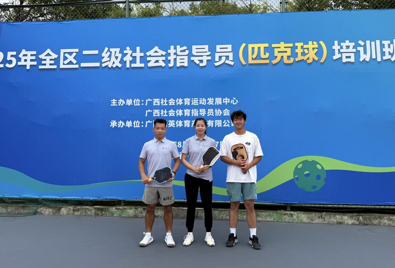 为深入贯彻落实“健康中国2030”战略,提升体育教师专业实践技能和教学水平,推动新兴球类运动在校园的普及推广,体育专业教研室黄鑫堂、邱萃珍、卢誉鑫三名教师参加2025年9月20日举办的广西全区二级社会体育指导员(第三期匹克球)培训。此次培训的参加得到了新活力体育产业学院全程支持。
