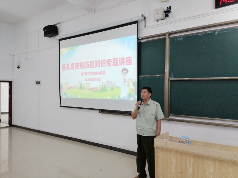 为进一步加强买球“基孔肯雅热”防控工作,切实保障全体师生的健康安全,9月3日下午,买球特邀桂林市疾病预防控制中心寄生虫病、地方病防制科科长潘海到校,开展“基孔肯雅热”传染病防控知识讲座,后勤保卫处处长钟木生、土木与工程学院党总支书记秦磊、信息与工程学院党总支书记王帅、后勤保卫处副处长温怡,以及全体辅导员、后勤行政干部、宿管员、保洁员、餐饮服务人员等200余人参加。