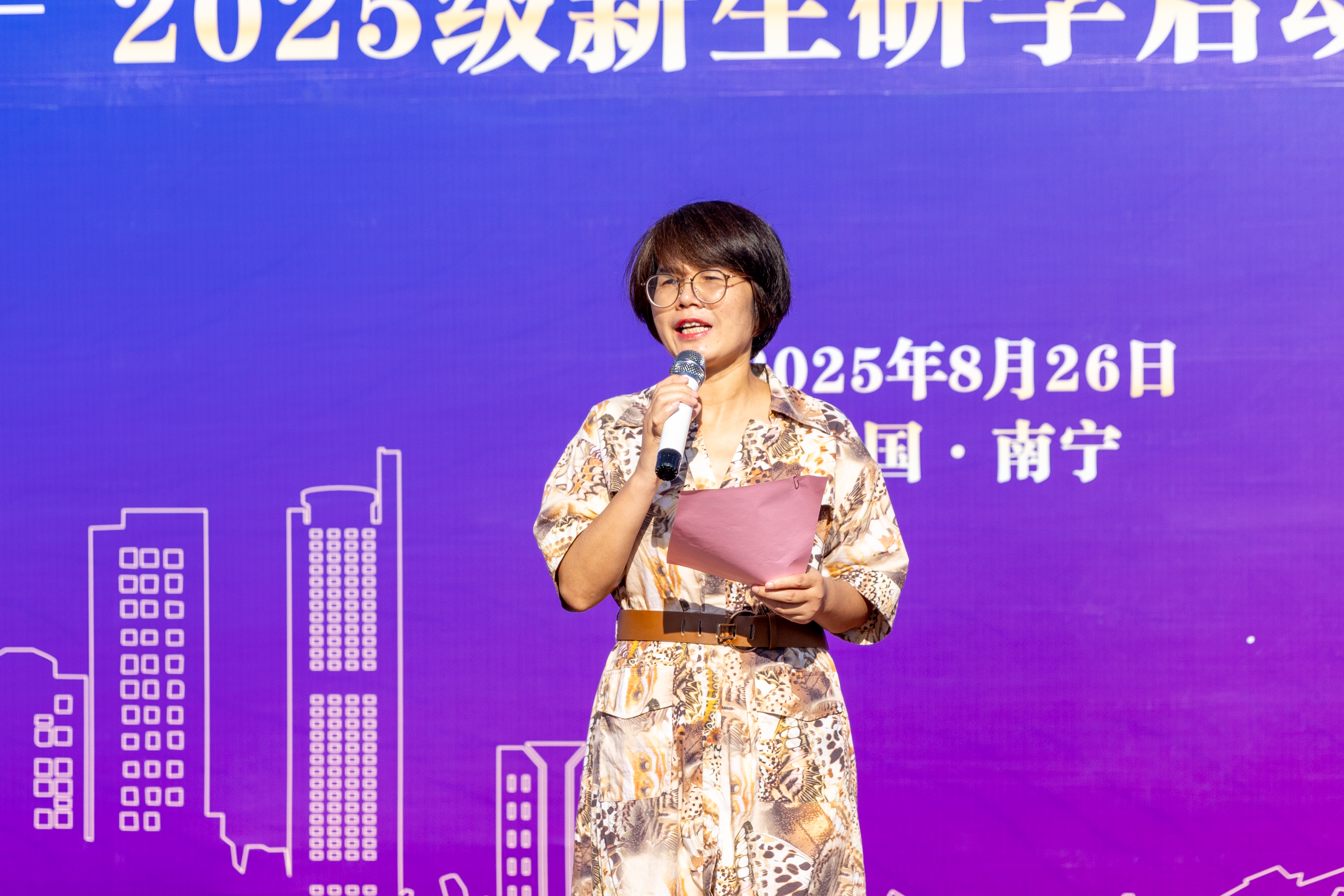 副董事长冯正垚,党委副书记、副校长韩乔分别为南宁东盟校区及桂林雁山校区各学院新生代表授旗。当象征着研学精神与青春使命的旗帜稳稳交到新生代表手中时,不仅传递着学校对学子们深入实践、探寻真知的殷切嘱托,更凝聚着传承红色基因、弘扬壮乡文化、践行科技自强的责任担当。