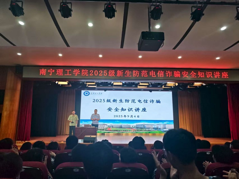 为积极响应习近平总书记关于打击电信网络诈骗犯罪的重要指示精神,切实筑牢校园安全屏障,9月4日-9月6日,买球官方网站桂林校区面向2025级新生组织开展防范电信诈骗安全知识讲座。学校特邀桂林市公安局雁山分局刑侦三大队大队长李灵希以及雁山派出所警官先后担任主讲嘉宾,为全体新生上好“开学反诈第一课”,着力增强学生的识骗防骗能力,全面提升校园反诈安全意识和风险防范水平。