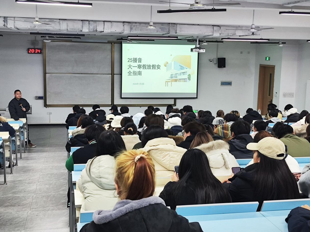 各班级辅导员结合冬春季节气候特点及节假日出行、生活规律,精准聚焦安全风险点,全面开展安全知识宣讲。班会重点围绕交通安全、人身安全、财产安全、法治教育、防网络诈骗、网络素养教育等关键领域,通过典型案例剖析、互动问答交流、情景模拟演练等形式,细致讲解了应对突发安全事件的处置方法和自救互救技巧,帮助学生熟练掌握实用的安全防护技能,切实提升风险防范能力和应急处置水平。此外,辅导员们还结合这一重要传统节日,向学生普及中华优秀传统文化知识,解读春节习俗背后的文化内涵,引导学生自觉传承和弘扬中华优秀传统文化,在潜移默化中增强学生的文化自信和民族自豪感,让安全教育与文化传承有机融合、相得益彰。
